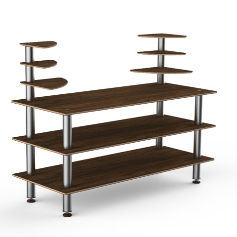Mogogo Buffet Solutions Modular Classic Multi-Shelf Station, 3-tier, 71" x 29-1/2" x 54"H, rectangular, (6) triangular shelves, Bengali mango wood BHP high pressure laminate with bamboo core top, brushed stainless steel legs, knockdown