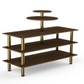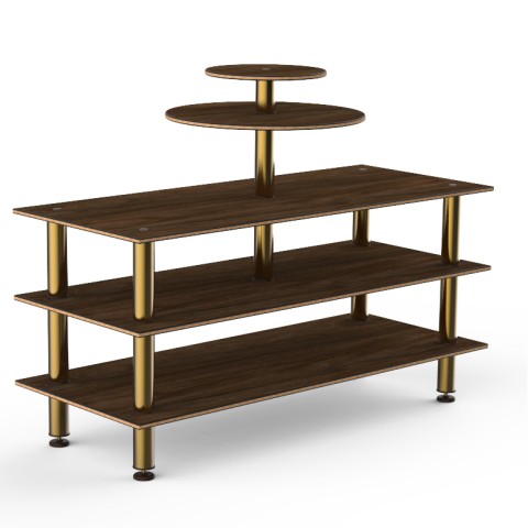Mogogo Buffet Solutions Modular Multi-Purpose Display, 3-tier, 75" x 29-1/2" x 53-1/2"H, rectangular, (2) tier round shelf, Bengali mango wood BHP high pressure laminate with bamboo core top, brushed brass legs, knockdown