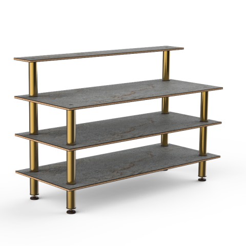 Mogogo Buffet Solutions Modular Classic Plus, 3-tier, 71" x 29-1/2" x 47"H, rectangular, with back shelf, grey slate BHP high pressure laminate with bamboo core top, brushed brass legs, knockdown