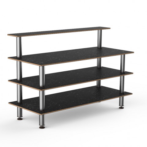 Mogogo Buffet Solutions Modular Classic Plus, 3-tier, 71" x 29-1/2" x 47"H, rectangular, with back shelf, Nero Marquina marble BHP high pressure laminate with bamboo core top, brushed stainless steel legs, knockdown