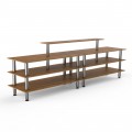 Mogogo Buffet Solutions Modular Double Display Station, 3-tier, 142" x 29-1/2" x 47"H, rectangular, with center shelf, high density bamboo finish, brushed stainless steel legs, knockdown