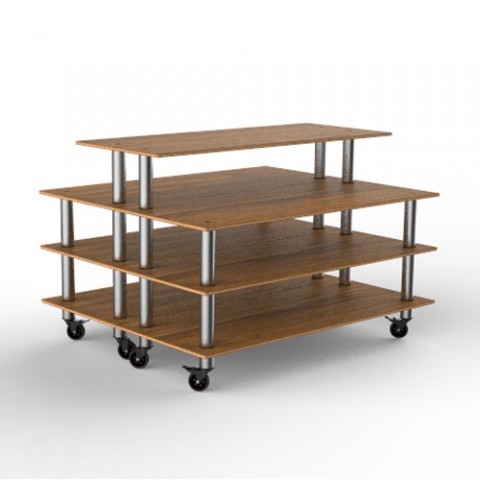 Mogogo Buffet Solutions Modular Market, 3-tier, 71" x 59" x 47-1/2", small, rectangular, with top shelf, high density bamboo finish, brushed stainless steel casters, knockdown