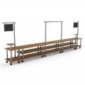 Mogogo Buffet Solutions Modular Fiesta Taco Bar, 3-tier, 558-1/2" x 38" x 96"H, rectangular, (2) round shelves, (2) sign posts with chalkboards, (5) hooks, high density bamboo finish, brushed stainless steel casters, knockdown