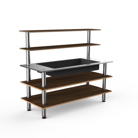 Mogogo Buffet Solutions Modular Back Bar Station, 3-tier, 71" x 29-1/2" x 60-1/2"H, rectangular, with insulated ice well, (2) back shelves, Bengali mango wood BHP high pressure laminate with bamboo core top, brushed stainless steel legs, knocked down (sto
