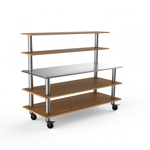 Mogogo Buffet Solutions Modular Back Bar Station, 3-tier, 71" x 29-1/2" x 60-1/2"H, rectangular, stainless steel work surface, (2) back shelves, high density bamboo finish, brushed stainless steel legs with casters, knockdown
