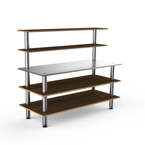 Mogogo Buffet Solutions Modular Back Bar Station, 3-tier, 71" x 29-1/2" x 60-1/2"H, rectangular, stainless steel work surface, (2) back shelves, Bengali mango wood BHP high pressure laminate with bamboo core top, brushed stainless steel legs, knockdown (s