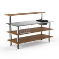 Mogogo Buffet Solutions Modular ProBar Station, 4-tier, 71" x 40" x 47-1/2"H, rectangular, solid stainless steel top, double wall ice bin, slick speed rail, (1) back shelf, high density bamboo finish, brushed stainless steel legs, knockdown