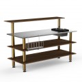 Mogogo Buffet Solutions Modular ProBar Station, 4-tier, 71" x 40" x 47-1/2"H, rectangular, solid stainless steel top, double wall ice bin, slick speed rail, (1) back shelf, Bengali mango wood BHP high pressure laminate with bamboo core top, brushed brass