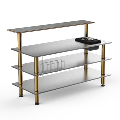 Mogogo Buffet Solutions Modular ProBar Station, 4-tier, 71" x 40" x 47-1/2"H, rectangular, solid stainless steel top, double wall ice bin, slick speed rail, (1) back shelf, grey slate BHP high pressure laminate with bamboo core top, stainless steel, b