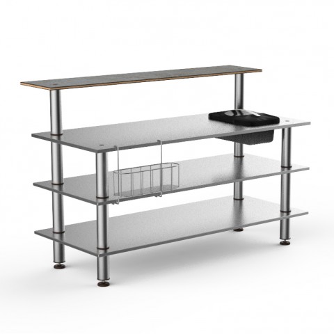 Mogogo Buffet Solutions Modular ProBar Station, 4-tier, 71" x 40" x 47-1/2"H, rectangular, solid stainless steel top, double wall ice bin, slick speed rail, (1) back shelf, grey slate BHP high pressure laminate with bamboo core top, stainless steel, b