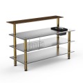 Mogogo Buffet Solutions Modular ProBar Station, 4-tier, 71" x 40" x 47-1/2"H, rectangular, solid stainless steel top, double wall ice bin, slick speed rail, (1) back shelf, Bengali mango wood BHP high pressure laminate with bamboo core top, stainless