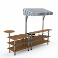 Mogogo Buffet Solutions Modular Mixology Bar Station, 3-tier, 125-1/2" x 41-1/2" x 96"H, rectangular, solid stainless steel work space, double wall ice bin, slick speed rail, (1) round side shelf, high density bamboo finish, white/blue canopy, brushed sta