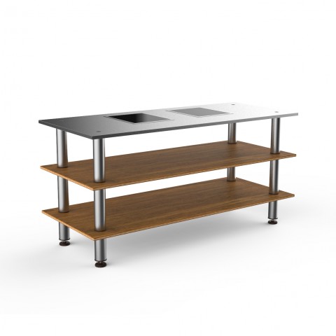 Mogogo Buffet Solutions Modular Pro Cooking Nemco Induction Station, 3-tier, drop-in, double well, 71" x 29-1/2" x 35"H, rectangular, cooking touch control, stainless steel work space, high density bamboo finish, brushed stainless steel legs, 1800 watt, 1