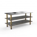 Mogogo Buffet Solutions Modular Pro Cooking Nemco Induction Station, 3-tier, drop-in, double well, 71" x 29-1/2" x 35"H, rectangular, cooking touch control, stainless steel work space, grey slate BHP high pressure laminate with bamboo core top, brushed br
