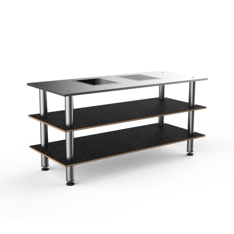 Mogogo Buffet Solutions Modular Pro Cooking Nemco Induction Station, 3-tier, drop-in, double well, 71" x 29-1/2" x 35"H, rectangular, cooking touch control, stainless steel work space, Nero Marquina marble BHP high pressure laminate with bamboo core top,