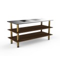 Mogogo Buffet Solutions Modular Pro Cooking Nemco Induction Station, 3-tier, drop-in, double well, 71" x 29-1/2" x 35"H, rectangular, cooking touch control, stainless steel work space, Bengali mango wood BHP high pressure laminate with bamboo core top, br