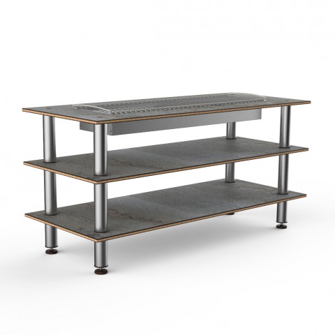 Mogogo Buffet Solutions Modular Heat Table, 3-tier, 71" x 29-1/2" x 35"H, rectangular, grey slate BHP high pressure laminate with bamboo core top, brushed stainless steel legs, knocked down