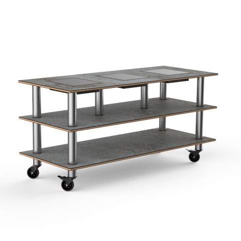 Mogogo Buffet Solutions Modular Nemco Induction Warming Unit, 3-tier, 71" x 29-1/2" x 35"H, rectangular, triple well, touch control, grey slate BHP high pressure laminate with bamboo core top, brushed stainless steel casters, 270 watt, 120v, 2.2 amp, knoc