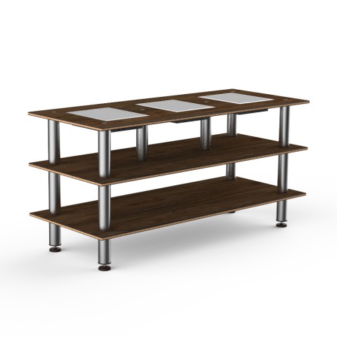 Mogogo Buffet Solutions Modular Nemco Induction Warming Unit, 3-tier, 71" x 29-1/2" x 35"H, rectangular, triple well, touch control, Bengali mango wood BHP high pressure laminate with bamboo core top, brushed stainless steel legs, 270 watt, 120v, 2.2 amp,