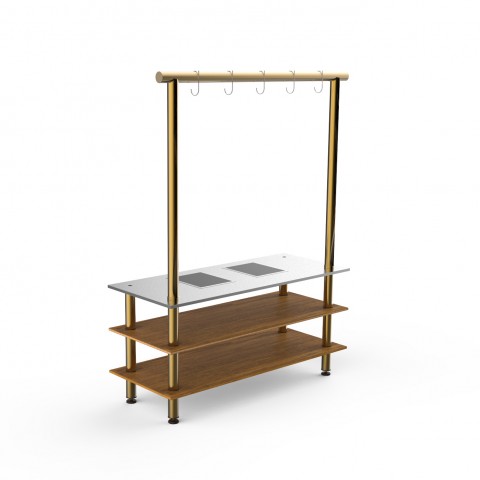 Mogogo Buffet Solutions Modular Pro Cooking Induction, 71" x 29-1/2" x 96"H, arched, high density bamboo finish, brushed brass legs, knocked down