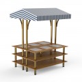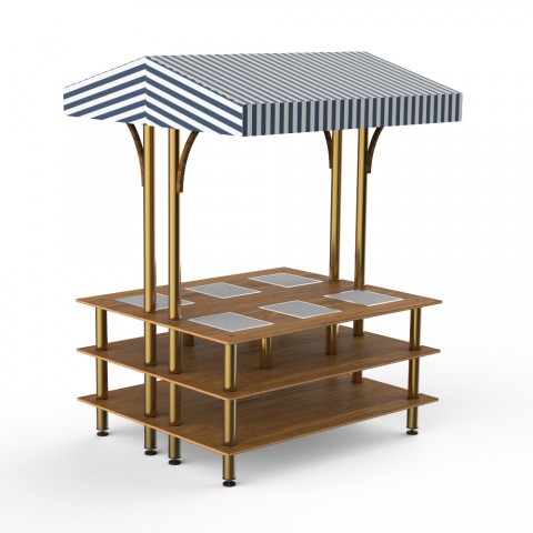 Mogogo Buffet Solutions Modular Market Warming Station, 3-tier, 71" x 59" x 96"H, square, high density bamboo finish, white/blue canopy, brushed brass legs, knocked down