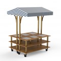Mogogo Buffet Solutions Modular Market Warming Station, 3-tier, 71" x 59" x 96"H, square, high density bamboo finish, white/blue canopy, brushed brass casters, knocked down