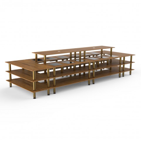 Mogogo Buffet Solutions Modular Grand Market Induction Station, 3-tier, 201" x 71" x 47-1/2"H, rectangular, (12) induction units, with top shelf, high density bamboo finish, brushed brass legs, knocked down