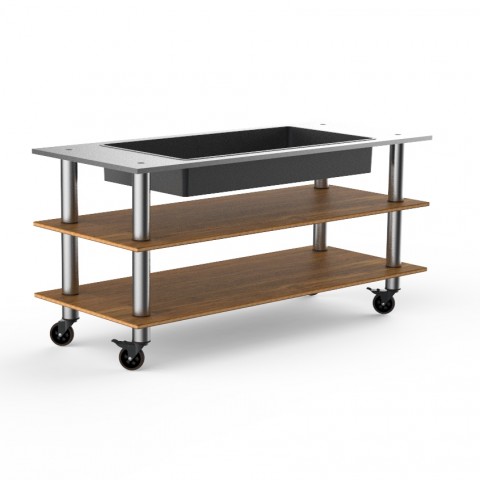 Mogogo Buffet Solutions Modular Salad Bar Unit, 3-tier, 71" x 29-1/2" x 35"H, high density bamboo finish, brushed stainless steel casters, knocked down