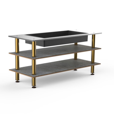Mogogo Buffet Solutions Modular Salad Bar Unit, 3-tier, 71" x 29-1/2" x 35"H, grey slate BHP high pressure laminate with bamboo core top, brushed brass legs, knocked down