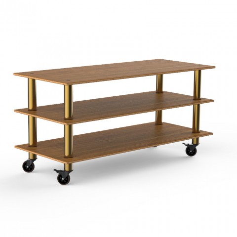 Mogogo Buffet Solutions Modular Classic Serving Station, 3-tier, 71" x 29-1/2" x 35"H, large, rectangular, high density bamboo finish, brushed brass casters, knockdown