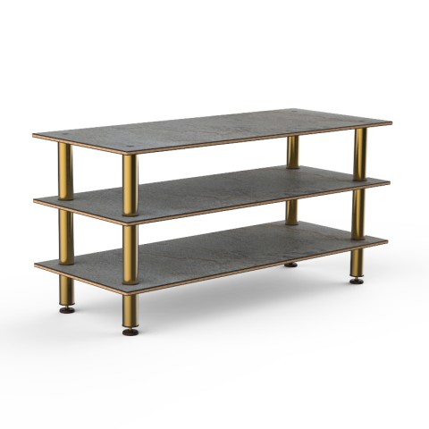 Mogogo Buffet Solutions Modular Classic Serving Station, 3-tier, 71" x 29-1/2" x 35"H, large, rectangular, grey slate BHP high pressure laminate with bamboo core top, brushed brass legs, knockdown