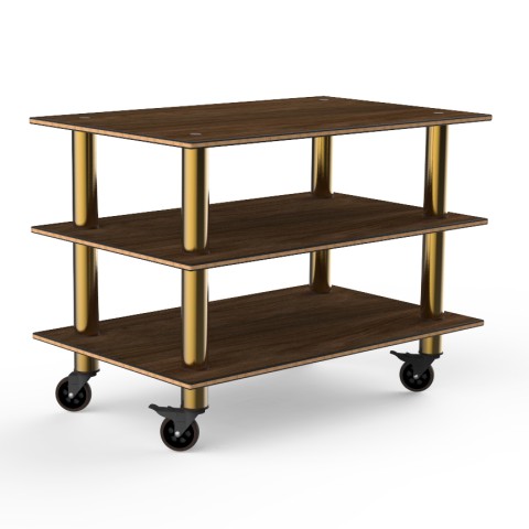 Mogogo Buffet Solutions Modular Classic Serving Station, medium, 3-tier, 47" x 29-1/2" x 35" H, rectangular, BHP high pressure laminate with bamboo core top, brushed brass casters, knockdown