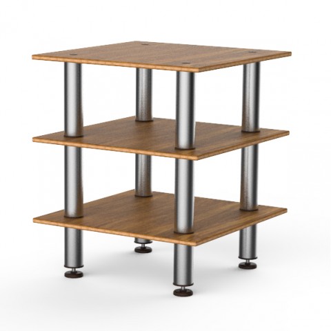 Mogogo Buffet Solutions Modular Classic Serving Station, 3-tier, 29-1/2" x 29-1/2" x 35"H, small, square, high density bamboo finish, brushed stainless steel legs, knockdown