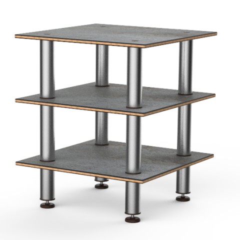 Mogogo Buffet Solutions Modular Classic Serving Station, 3-tier, 29-1/2" x 29-1/2" x 35"H, small, square, grey slate BHP high pressure laminate with bamboo core top, brushed stainless steel legs, knockdown