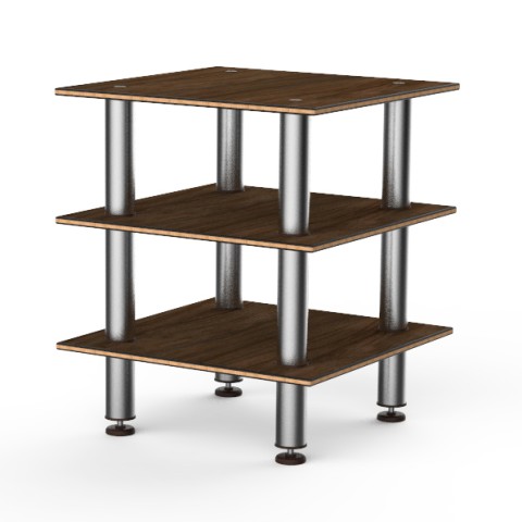 Mogogo Buffet Solutions Modular Classic Serving Station, 3-tier, 29-1/2" x 29-1/2" x 35"H, small, square, Bengali mango wood BHP high pressure laminate with bamboo core top, brushed stainless steel legs, knockdown