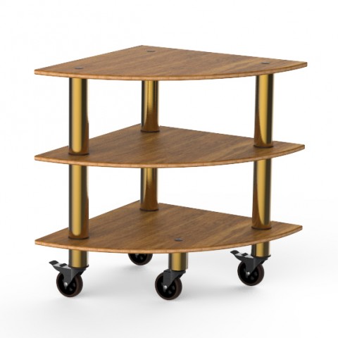 Mogogo Buffet Solutions Modular Classic Corner Unit, 3-tier, 29-1/2" x 29-1/2" x 35"H, triangular, high density bamboo finish, brushed brass casters, knockdown