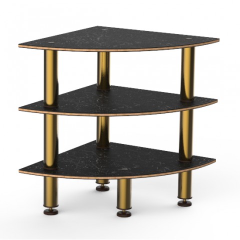 Mogogo Buffet Solutions Modular Classic Corner Unit, 3-tier, 29-1/2" x 29-1/2" x 35"H, triangular, Nero Marquina BHP high pressure laminate with bamboo core top, brushed brass legs, knockdown
