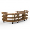 Mogogo Buffet Solutions Modular Open C Serving Station, 4-tier, 134-1/2" x 84" x 41"H, high density bamboo finish, brushed brass casters, knockdown