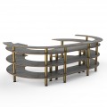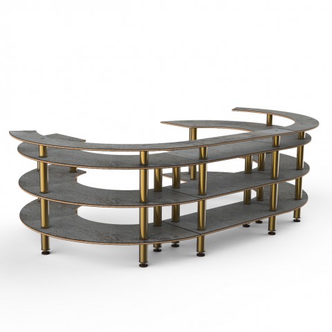 Mogogo Buffet Solutions Modular Open C Serving Station, 4-tier, 134-1/2" x 84" x 41"H, grey slate BHP high pressure laminate with bamboo core top, brushed brass legs, knockdown