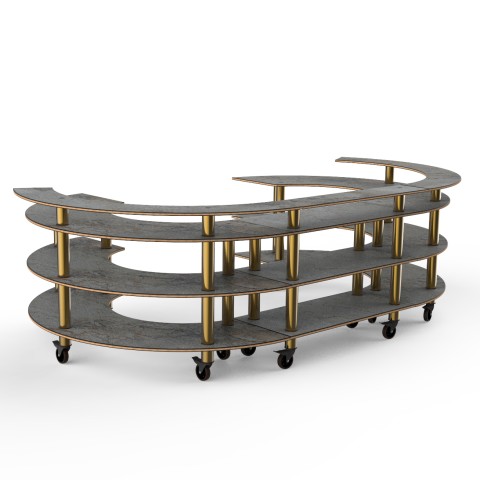 Mogogo Buffet Solutions Modular Open C Serving Station, 4-tier, 134-1/2" x 84" x 41"H, grey slate BHP high pressure laminate with bamboo core top, brushed brass casters, knockdown
