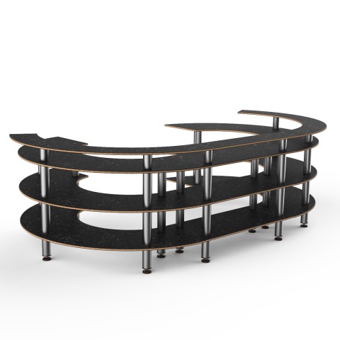 Mogogo Buffet Solutions Modular Open C Serving Station, 4-tier, 134-1/2" x 84" x 41"H, Nero Marquina marble BHP high pressure laminate with bamboo core top, brushed stainless steel legs, knockdown