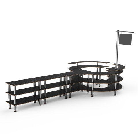 Mogogo Buffet Solutions Modular Creative DIY Station, 4-tier, 205" x 98" x 101"H, Nero Marquina marble BHP high pressure laminate with bamboo core top, brushed stainless steel legs, knockdown