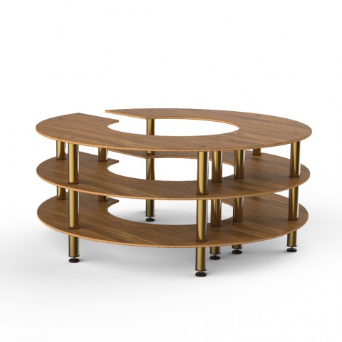Mogogo Buffet Solutions Modular Serving Station, 3-tier, 81-1/2" dia. x 35"H, round, high density bamboo finish, brushed brass legs, knockdown