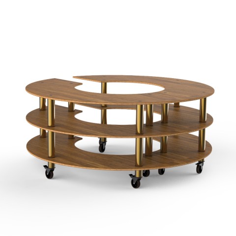 Mogogo Buffet Solutions Modular Serving Station, 3-tier, 81-1/2" dia. x 35"H, round, high density bamboo finish, brushed brass casters, knockdown