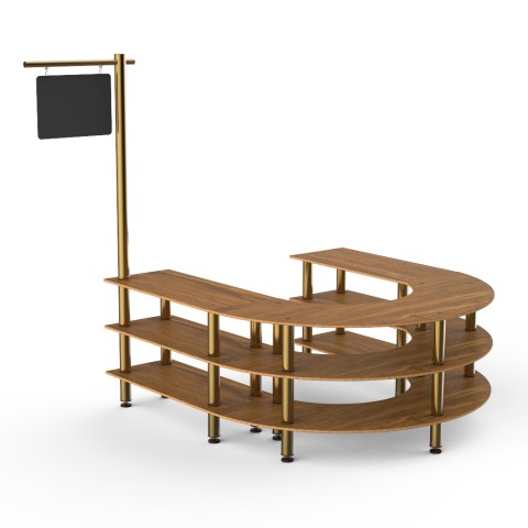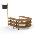 Mogogo Buffet Solutions Modular Serving Station, 3-tier, 88" x 81-1/2" x 95-1/2"H, u-shape, with sign post & chalkboard, high density bamboo finish, brushed brass casters, knockdown