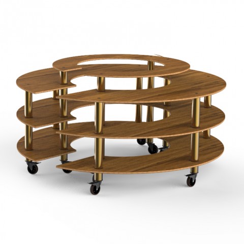 Mogogo Buffet Solutions Modular Market Station, 4-tier, 81-1/2" dia. x 41"H, round, high density bamboo finish, brushed brass casters, knockdown