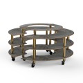 Mogogo Buffet Solutions Modular Market Station, 4-tier, 81-1/2" dia. x 41"H, round, grey slate BHP high pressure laminate with bamboo core top, brushed brass casters, knockdown