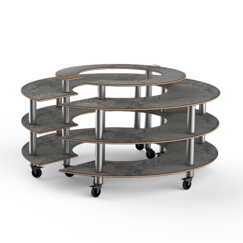 Mogogo Buffet Solutions Modular Market Station, 4-tier, 81-1/2" dia. x 41"H, round, grey slate BHP high pressure laminate with bamboo core top, brushed stainless steel casters, knockdown