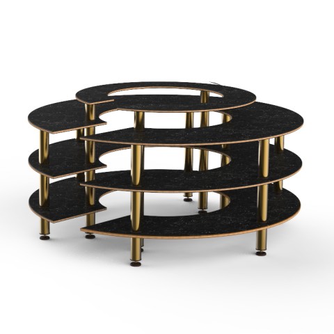Mogogo Buffet Solutions Modular Market Station, 4-tier, 81-1/2" dia. x 41"H, round, Nero Marquina marble BHP high pressure laminate with bamboo core top, brushed brass legs, knockdown