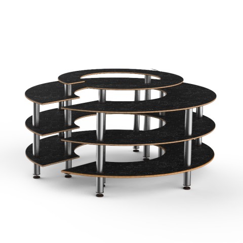Mogogo Buffet Solutions Modular Market Station, 4-tier, 81-1/2"W x 82"D x 41"H, round, Nero Marquina marble BHP high pressure laminate with bamboo core top, brushed stainless steel legs, knockdown